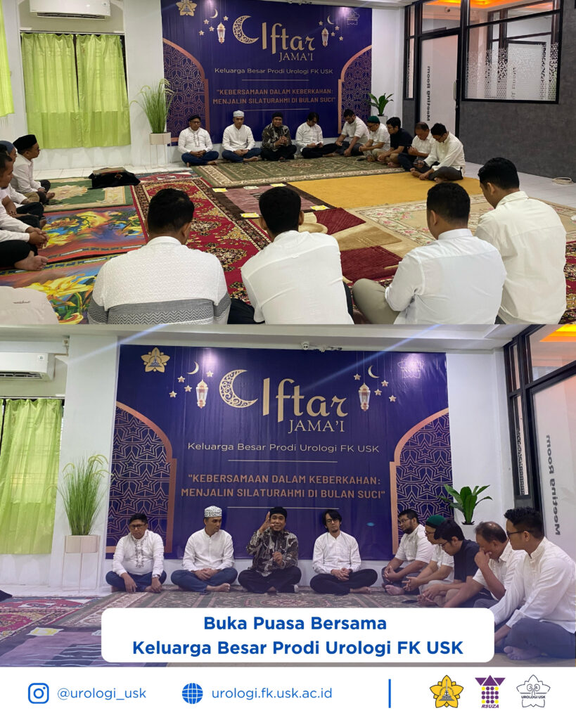 Sabtu, 15 Maret 2024 – Keluarga besar Program Studi Urologi Fakultas Kedokteran Universitas Syiah Kuala (FK USK) mengadakan acara buka puasa bersama yang berlangsung di Gedung Prodi Urologi FK USK. Acara ini dihadiri oleh seluruh dosen, staf, PPDS, serta dokter muda, yang turut serta dalam momen kebersamaan di bulan Ramadan.