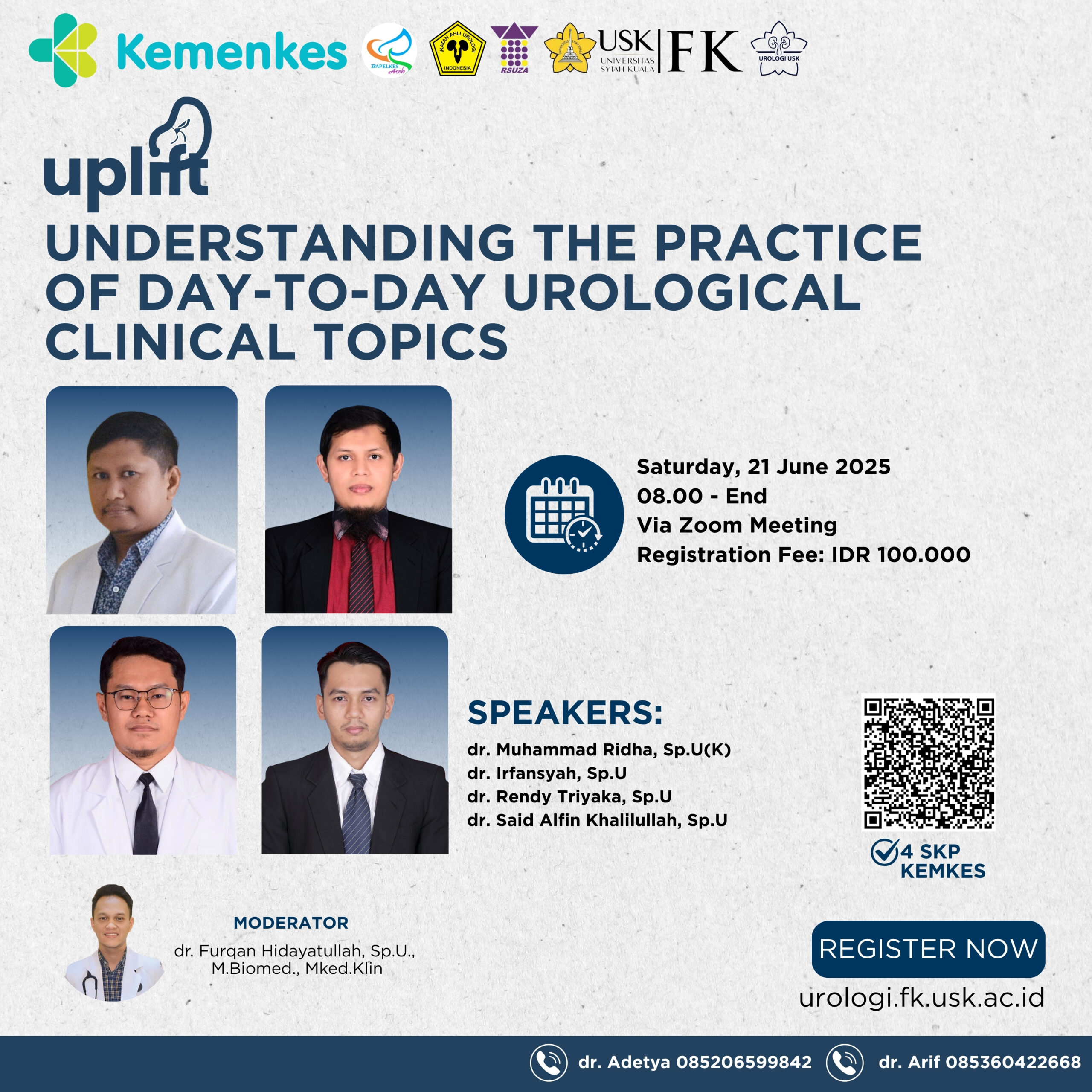 Webinar ini menghadirkan para pakar urologi yang akan membahas topik-topik praktis dan relevan dalam praktik klinis sehari-hari.
