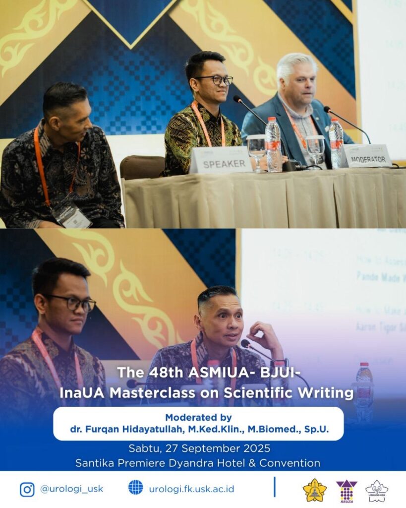 Pada kegiatan ini, Dr. dr. Jufriady Ismy, Sp.U(K) berperan sebagai moderator dalam sesi Masterclass InaSOU & InaSRU, sementara dr. Furqan Hidayatullah, M.Ked.Klin., M.Biomed., Sp.U turut menjadi moderator pada sesi BJUI-InaUA Masterclass on Scientific Writing.