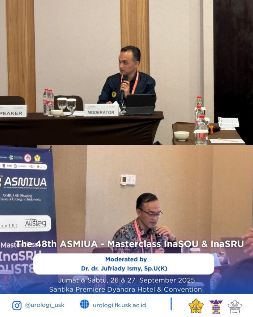 Medan, 26–27 September 2025 – Program Studi Urologi Fakultas Kedokteran Universitas Syiah Kuala (FK USK) turut berpartisipasi aktif dalam ajang ilmiah The 48th ASMIUA – Masterclass InaSOU, InaSRU & BJUI-InaUA, yang berlangsung di Santika Premiere Dyandra Hotel & Convention, Medan.